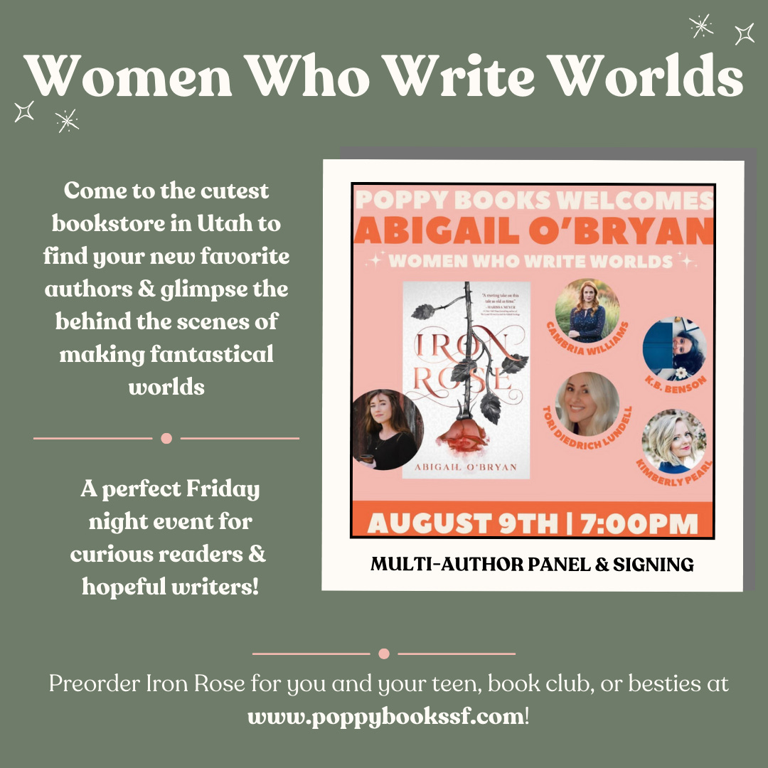 This panel is going to be fantastic! I’m honored to join four incredible Utah fantasy authors for a joint signing and panel at Poppy Books & Gifts in Spanish Fork, UT on Friday the 9th. If you’re curious, I’ve linked the panelists below: